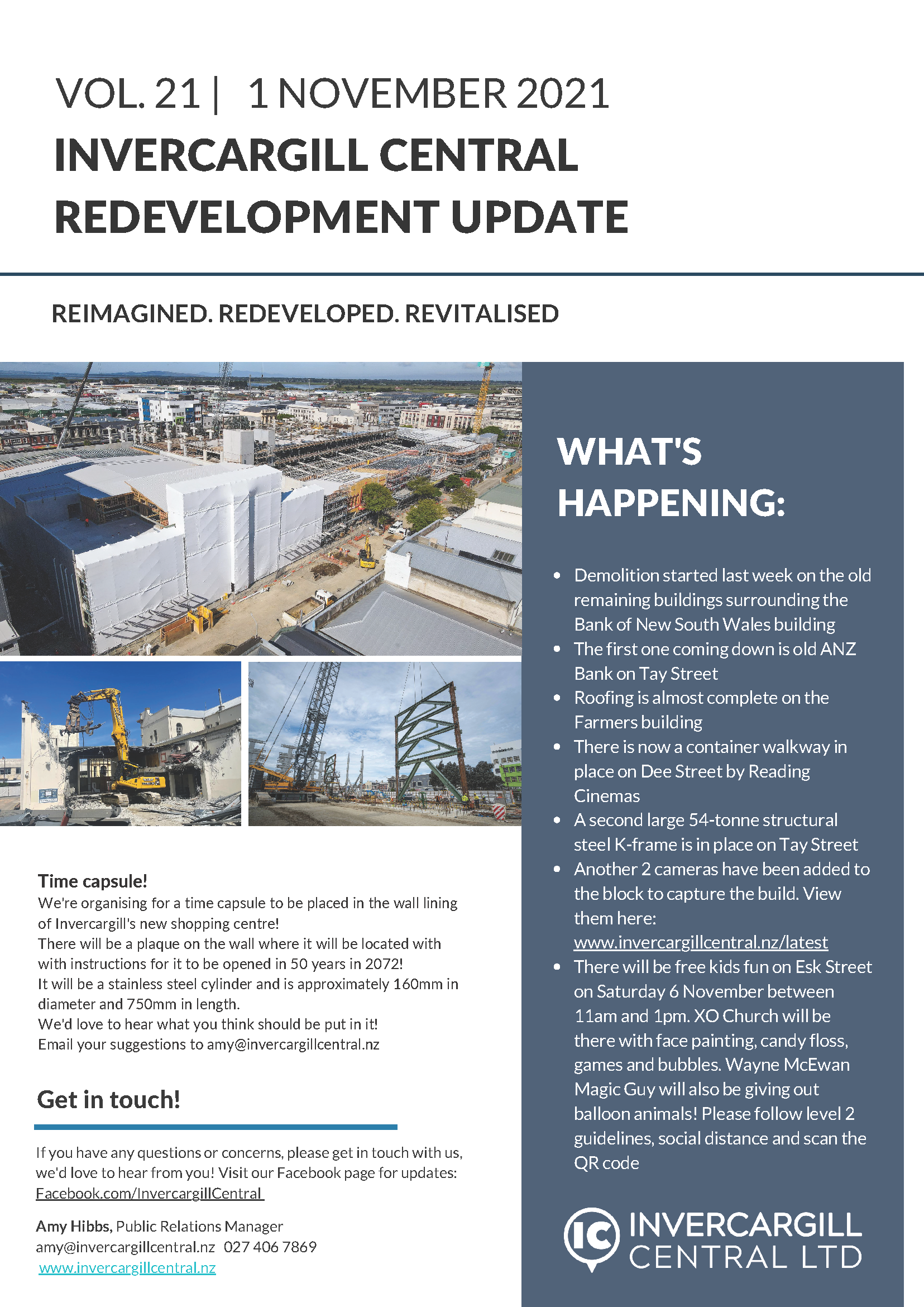 Invercargill Central Redevelopment Update Vol.21 Subscribe Sign up with your email address to receive news and updates. Email Address Sign Up We respect your privacy. Thank you! NewslettersNaked CreativeNovember 1, 2021 Facebook0 Twitter LinkedIn0 Reddit Tumblr Pinterest0 0 Likes